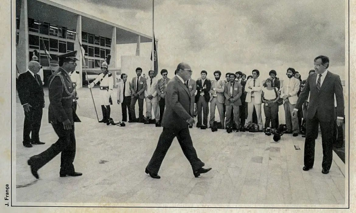 No dia 24 de janeiro de 1984, ainda durante a ditadura militar, o grupo de repórteres fotográficos que cobria a presidência da República resolveu fazer um protesto silencioso. Postou-se em fila, lado a lado, na descida da rampa do Palácio do Planalto e, quando o presidente João Baptista Figueiredo passou, depôs as câmeras no chão.
