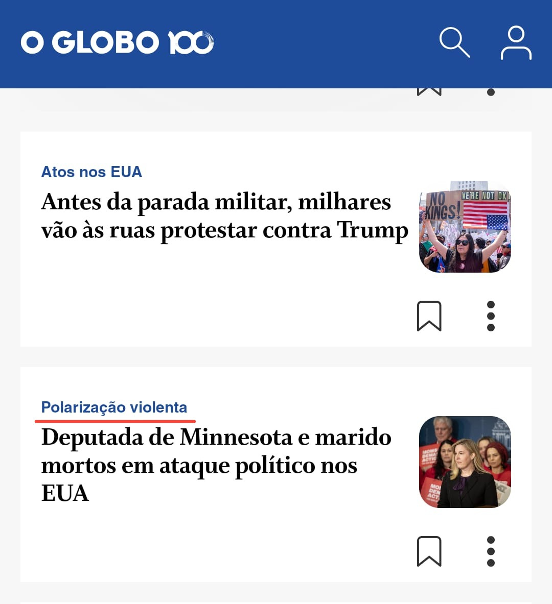 A polícia apreendeu na casa do assassino uma lista com mais de 70 alvos, entre médicos, líderes comunitários e vários outros políticos, todos, 100%, do Partido Democrata. Mesmo assim, mesmo diante de tudo isso, O Globo resolveu pôr o chapéu “polarização violenta” em matéria no site do jornal sobre o duplo assassinato e a dupla tentativa de homicídio deste sábado no Minnesota.