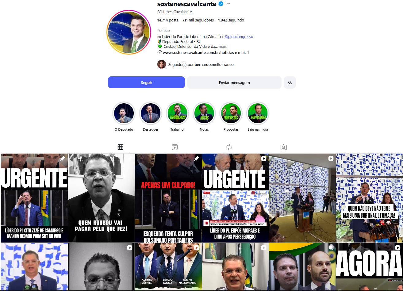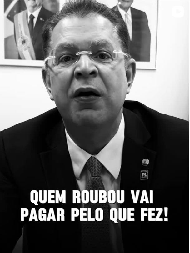 O deputado, teólogo e pastor Sóstenes Cavalcante mantém fixada no alto do seu perfil do Instagram uma postagem que é sobre a CPMI do INSS, mas com a cara do próprio artilheiro musical e a legenda: “quem roubou vai pagar pelo que fez!”.
