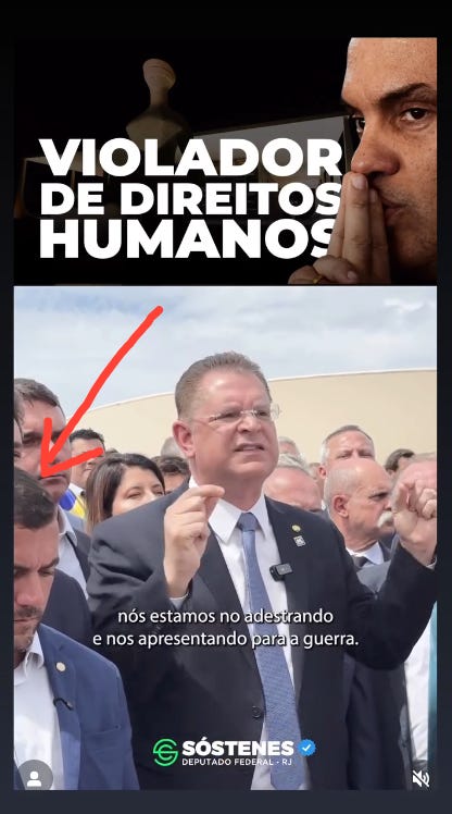 “Brasileiros, nós precisamos de vocês. A partir de agora, nós estamos nos adestrando e nos preparando para a guerra. Se é guerra que o governo quer, é guerra que o governo terá. Não haverá paz no Brasil enquanto não houver anistia e impeachment de Alexandre de Moraes”.